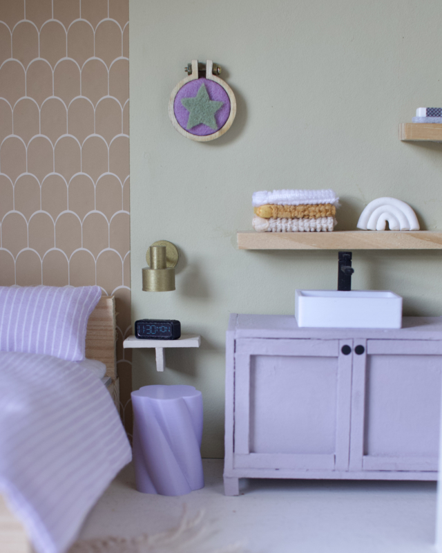 Ben jij op zoek naar een kleurrijk kunstwerkje voor aan de muur in jouw poppenhuis? Wat dacht je van deze moderne wandhanger met ster die Lots of Freckles speciaal voor Moonwalk Teddybear omtoverde tot een mini variant.